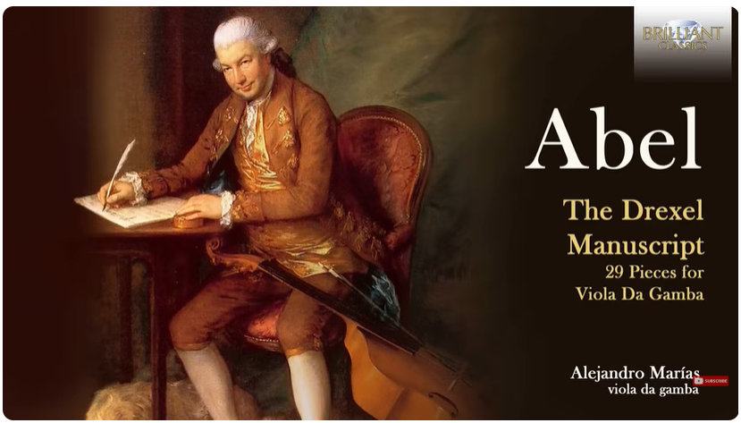 Carl Friedrich Abel was possibly the last great virtuouso of, and composer for, the viol, until its rediscovery in the early 20th century. His musical credentials were impeccable: his father was a noted virtuoso on viol, and who also played violin and cello; he had played with J.S. Bach in Cöthen. (It may be that Bach’s sonatas for viol and harpsichord were written with the elder Abel in mind.) The young Abel was in Leipzig at the same time as Bach, who may possibly have taught him. Bach certainly recommended that Abel be given a position in Hasse’s orchestra in Dresden. Abel also met the young Mozart and his father during their tour of Europe, and Abel gave Mozart some lessons. In the second half of the 18th century, when Abel was in London, he teamed up with J.C. Bach (known as the “London Bach”, and youngest son of J.S. Bach), and the Bach-Abel subscription concerts were for many years a fixture in the musical life of London. Abel was also a great friend of the painter Thomas Gainsborough, whose portraits of Abel with his viol are some of the greatest paintings ever of a musician with their instrument. Gainsborough was a very keen amateur viol player (he owned 5 instruments), and there is some thought that Abel composed at least some of these pieces for him. If that’s the case, then Gainsborough must have been a very good player indeed.